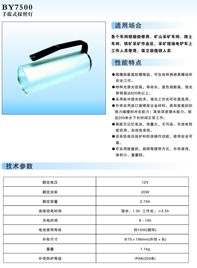 ->BY7500手提式探照燈